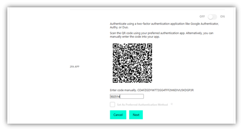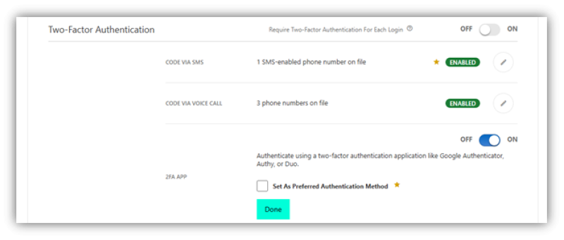 Once the code has been entered, you may set the Authenticator as you preferred method for verification or simply click Done.