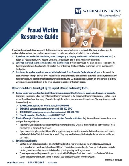 Important Washington Trust Phone Numbers